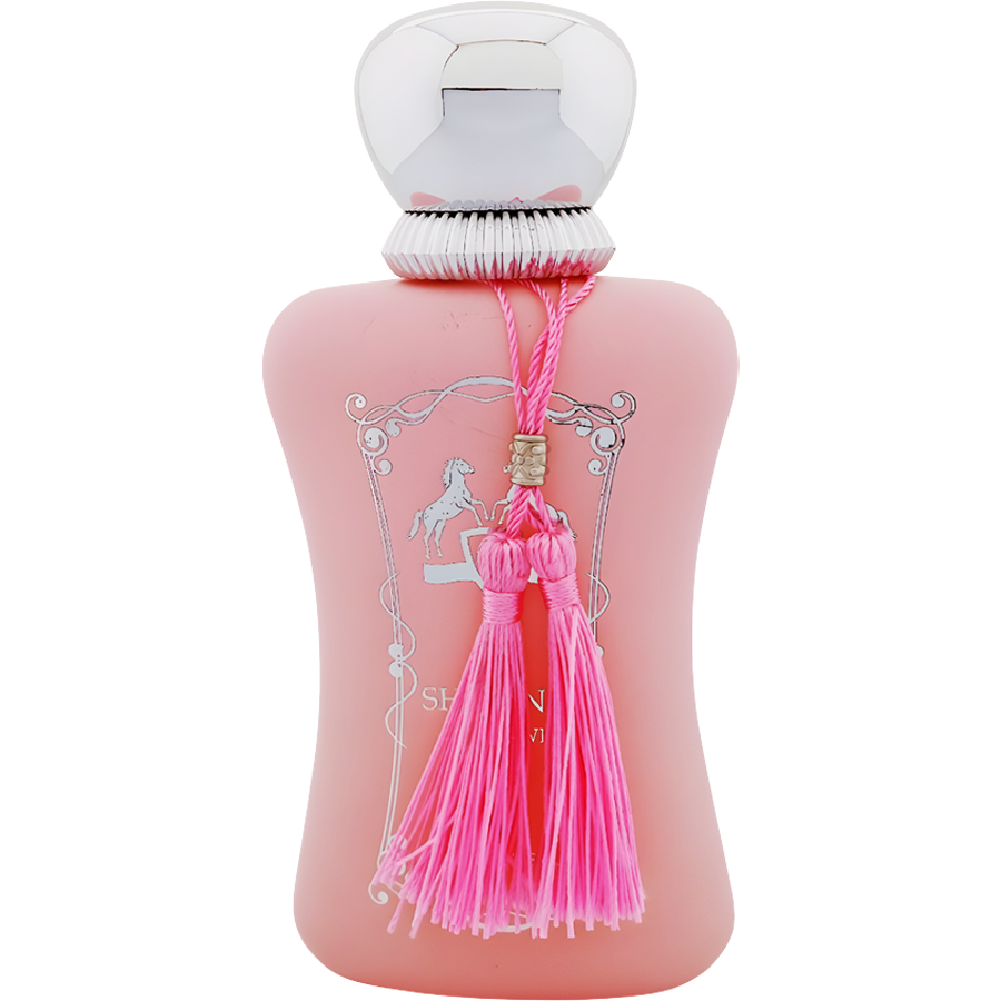 * طراحی لوکس: بطری مات صورتی رنگ با جزئیات آویز (Tassel)، حس اشرافیت و لطافت زنانه عطر مرجع را به خوبی تقلید میکند.