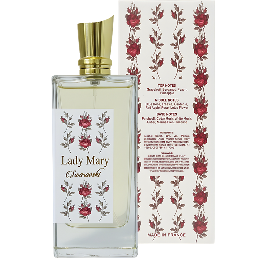 لیدی ماری (Lady Mary by Swarovski) یک ادو پرفیوم زنانه است که ظرافت کلاسیک را با جذابیتی مدرن و قوی در هم میآمیزد. این عطر با ترکیبی گلی، میوهای و شیرین، برای خانمهای شیکپوش، کاریزماتیک و مستقل طراحی شده است. با وجود رایحهٔ ملایم و شیرین اولیه، عمق چوبی و دودی نتهای پایانی، ماندگاری بالا و پخش بوی قوی آن را تضمین میکند و رایحهای جذاب و دلنشین به جا میگذارد.