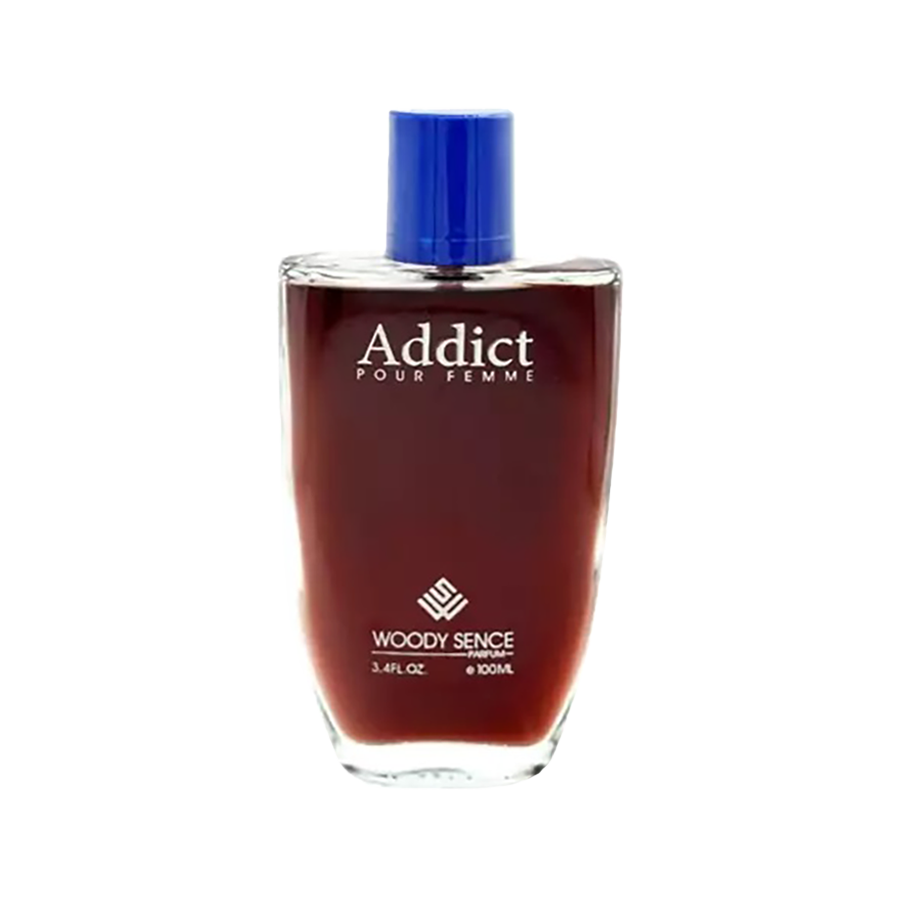 ادکلن وودی سنس مدل ادیکت با حجم ۱۰۰ میلیلیتر، عطری با رایحه گرم، شیرین و شرقی است که از نسخه اصلی Dior Addict الهام گرفته شده است. این عطر با نتهای اصلی و قدرتمند وانیل، گل یاس و دانه تونکا، رایحهای عمیق و ماندگار ایجاد میکند. این محصول به دلیل شباهت رایحه به نسخه اصلی و قیمت اقتصادی، در میان عطرهای شرکتی طرفداران زیادی دارد.